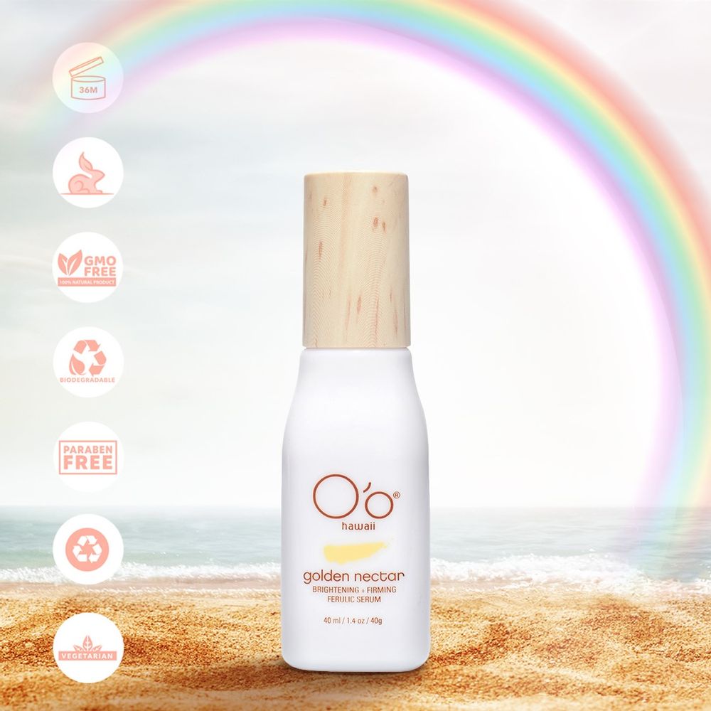 Golden Nectar helps tighten, brighten and reduce visible signs of aging along with melasma/sunspots. Protects against UV/oxidative stress and even works as a spot treatment for acne! This high performance, miracle serum is all the buzz with its highly concentrated, triple boosting complex of Ferulic Acid, Sodium Hyaluronate and Sea Buckthorn Vitamin C. This complex works to strengthen each active within the complex and then it further boosts the antioxidants in the formula. Rose quartz crystals increase circulation and plump and nutrient-rich, Hawaii grown algae and noni repair at the cellular level and destroy free radicals for truly golden results. Exotic Hawaiian Sandalwood and Bergamot aroma.